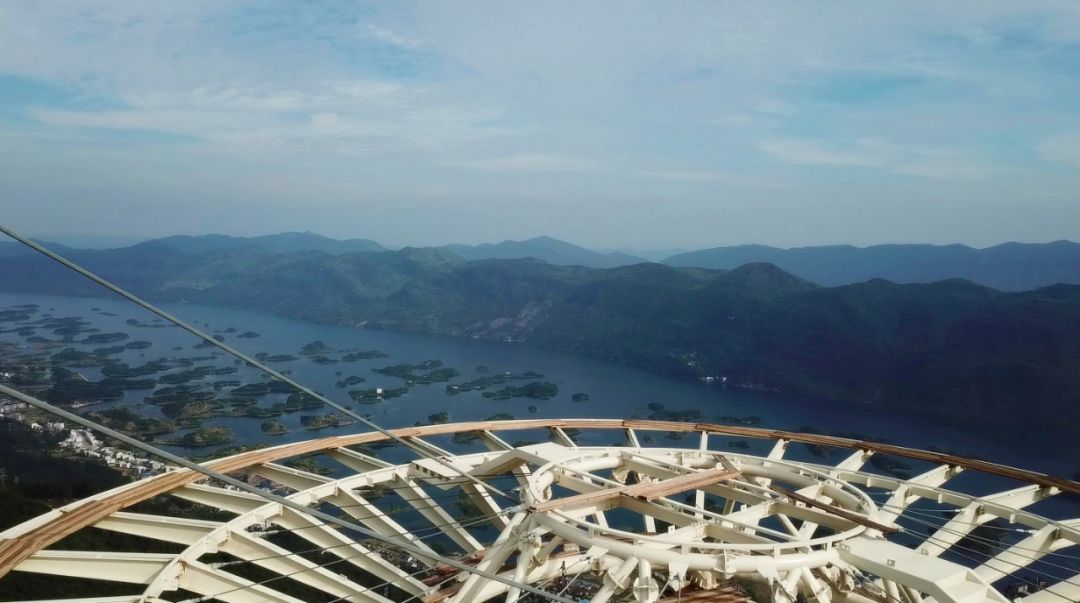仙島湖“天空之城”是一座建立在海拔520.1314米高空的玻璃棧道,其中,觀景平臺(tái)直徑26.8米,由玻璃懸挑在半空中,外觀是一個(gè)白色的圓形平臺(tái),總面積近600平方米,相當(dāng)于一個(gè)半標(biāo)準(zhǔn)籃球場(chǎng)的面積。站在“天空之城”上,可以俯瞰仙島湖星羅棋布的1002個(gè)島,置身碧水藍(lán)天之間,令人心曠神怡。真正做到了古人心目中的“一覽眾山小”。