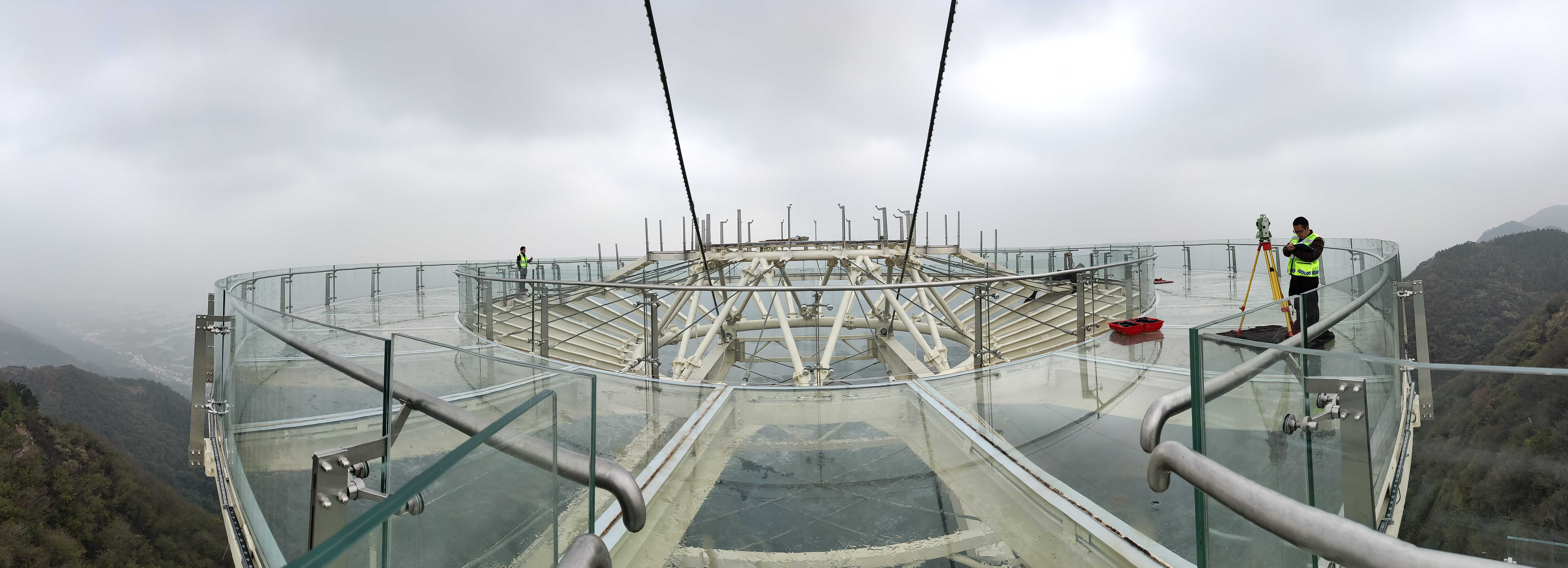 20181121日,九方安達(dá)工程技術(shù)集團(tuán)有限責(zé)任公司(下文簡(jiǎn)稱“九方檢測(cè)”)受委托方要求,對(duì)位于黃石市陽新縣的風(fēng)景區(qū)仙島湖天空之城這一玻璃棧道進(jìn)行了面積測(cè)量,以便提供精準(zhǔn)的數(shù)據(jù)應(yīng)對(duì)天空之城的世界最大面積玻璃棧道吉利斯記錄挑戰(zhàn)。